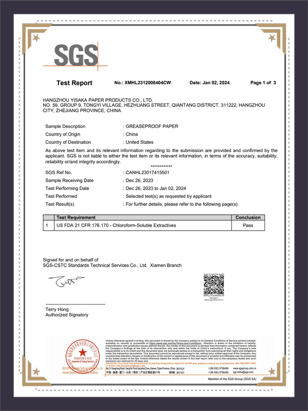 オイルプルーフペーパーSGSテストレポート